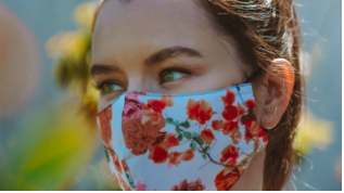 A lady captured in a pink floral mask (etonline.com)